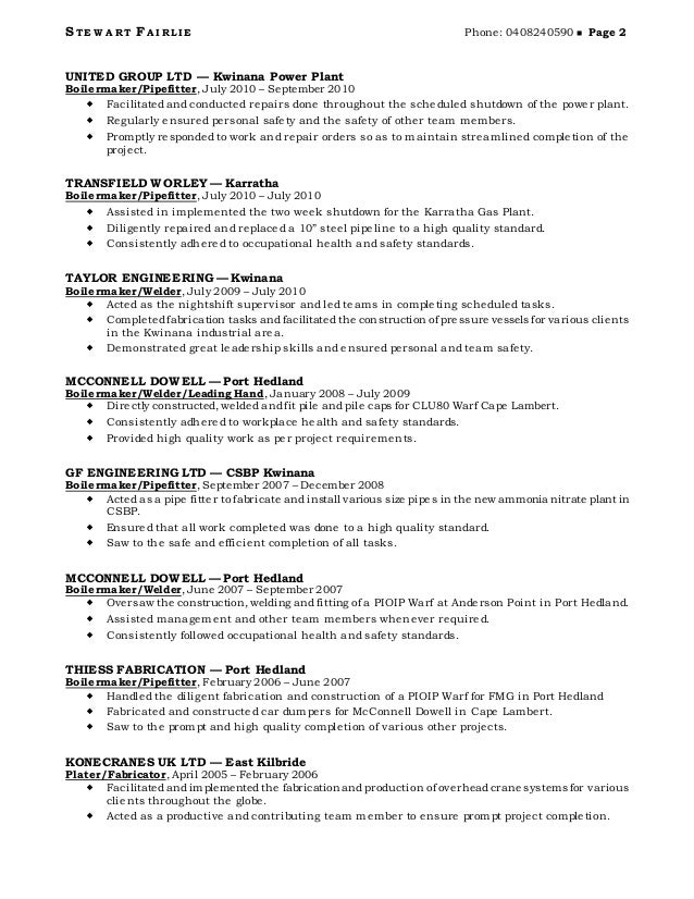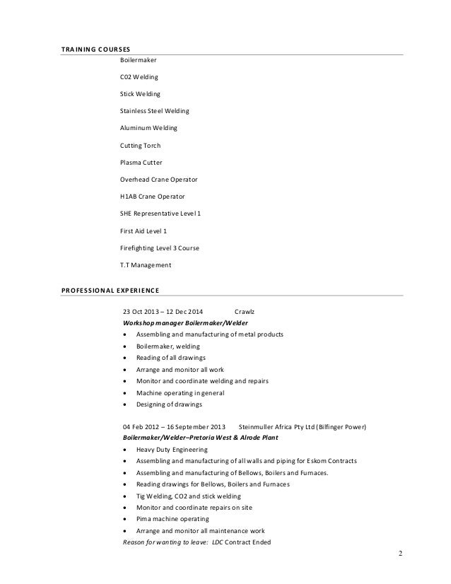 Sound problem solving abilities with strong attention to detail and safety. Interested in growing a career and fostering leadership. Boilermaker interest in cv : Find out how much a boilermaker get paid in your area. I'm a welding manager with 15 years' experience as a welder & boilermaker, 5 years' managing a welding department, delivering.